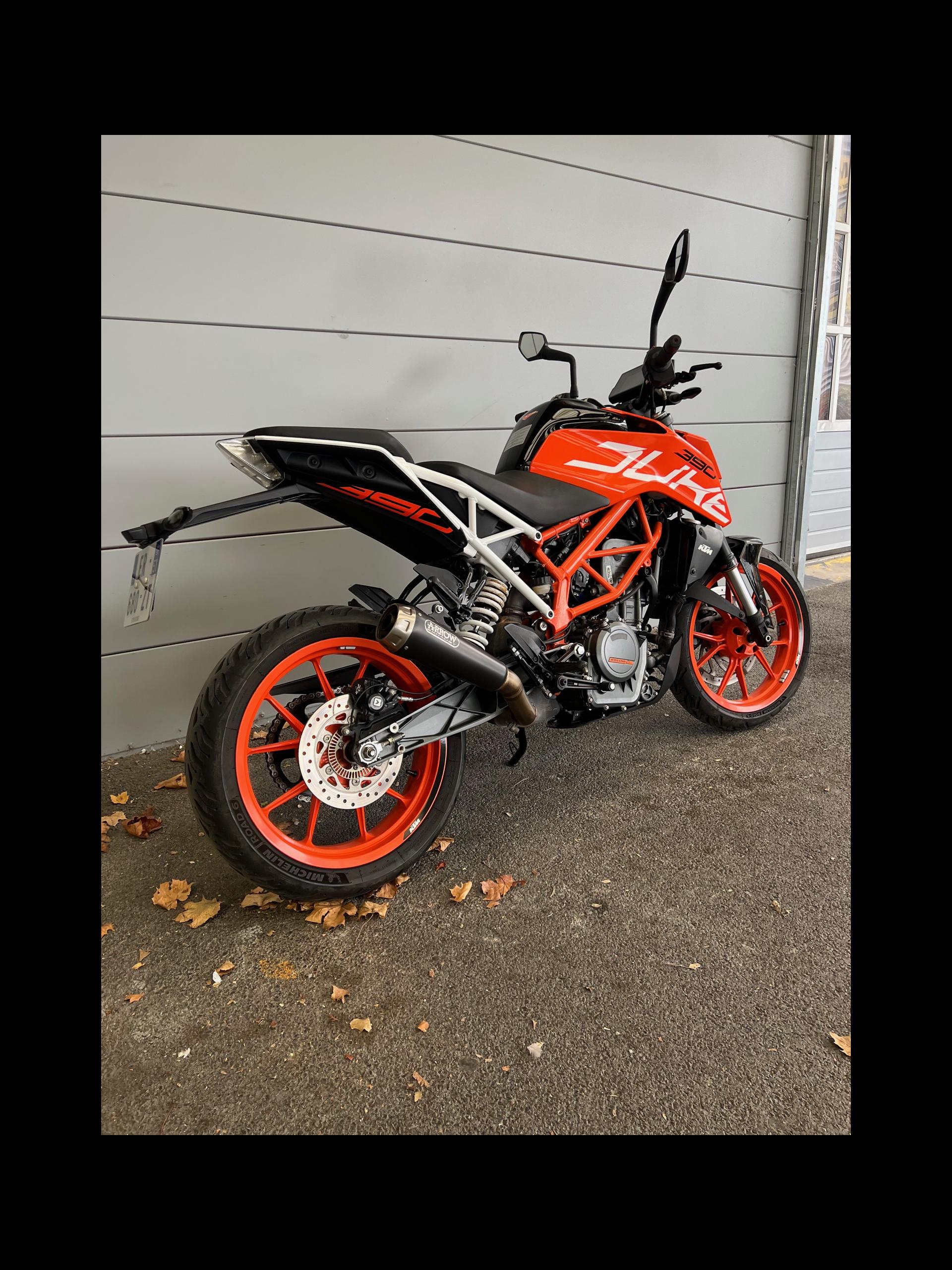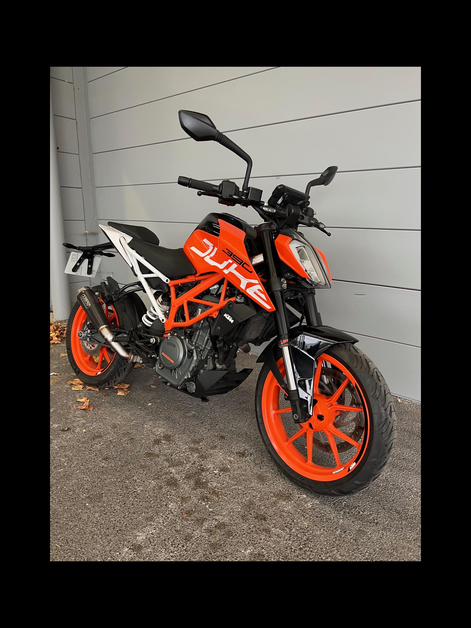 KTM 390 DUKE ABS (roadster), orange, mise en circulation en 11/2017.
